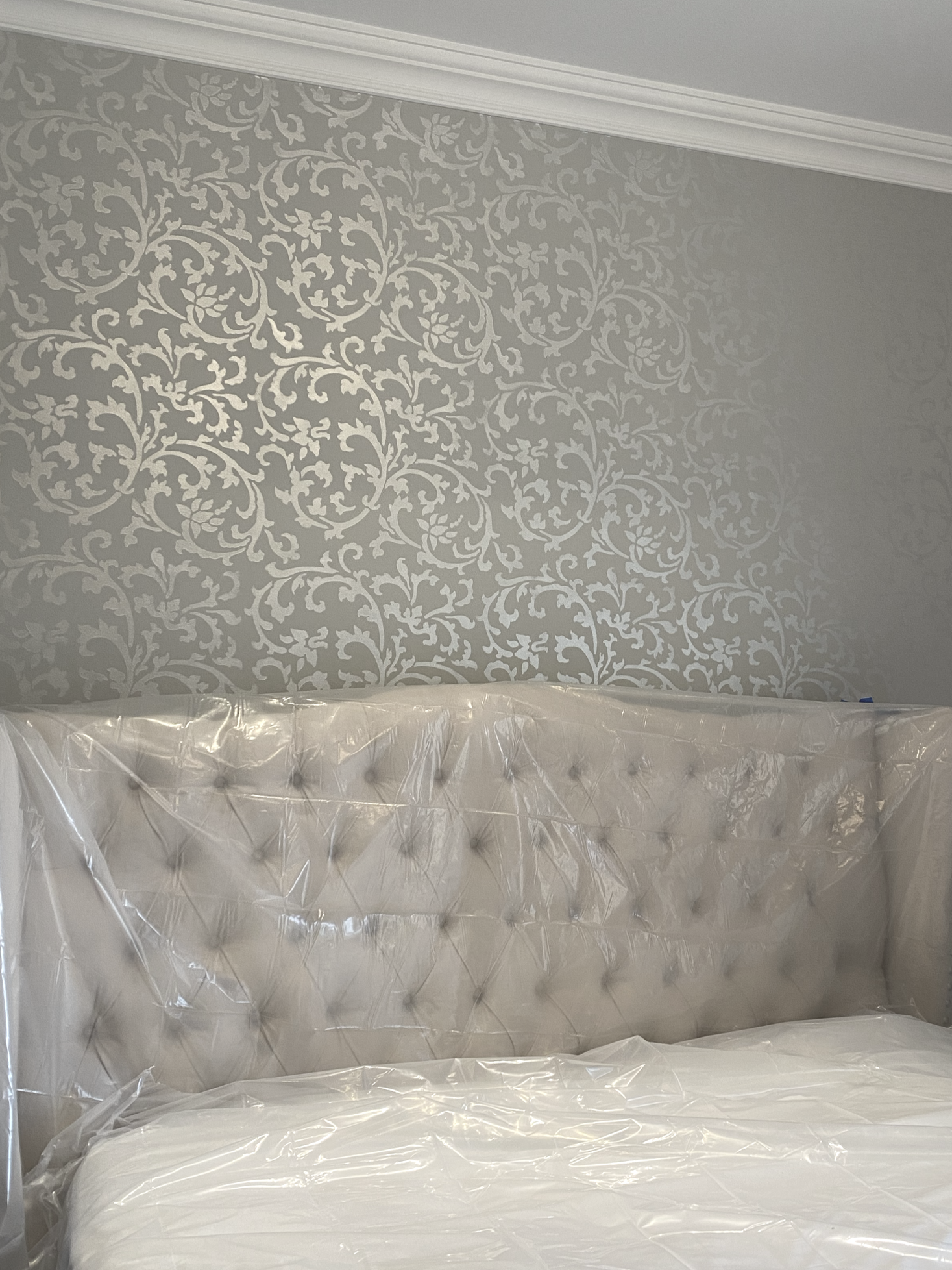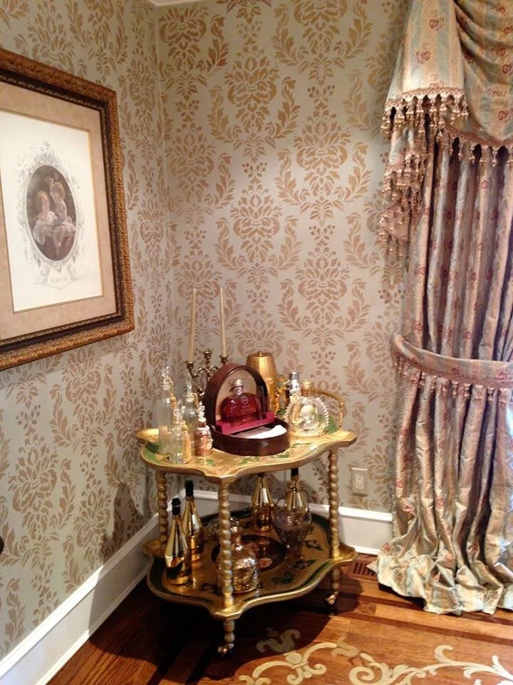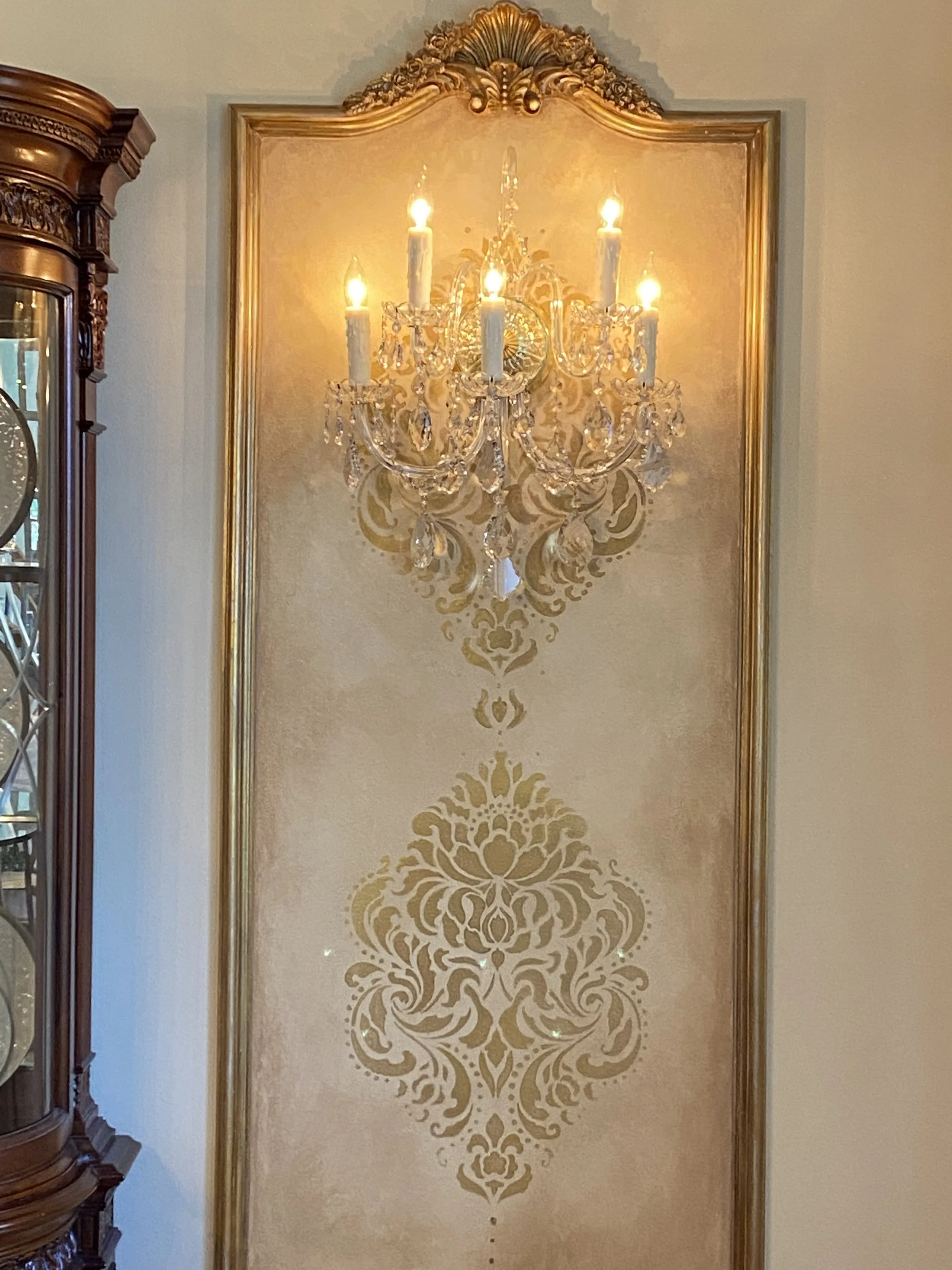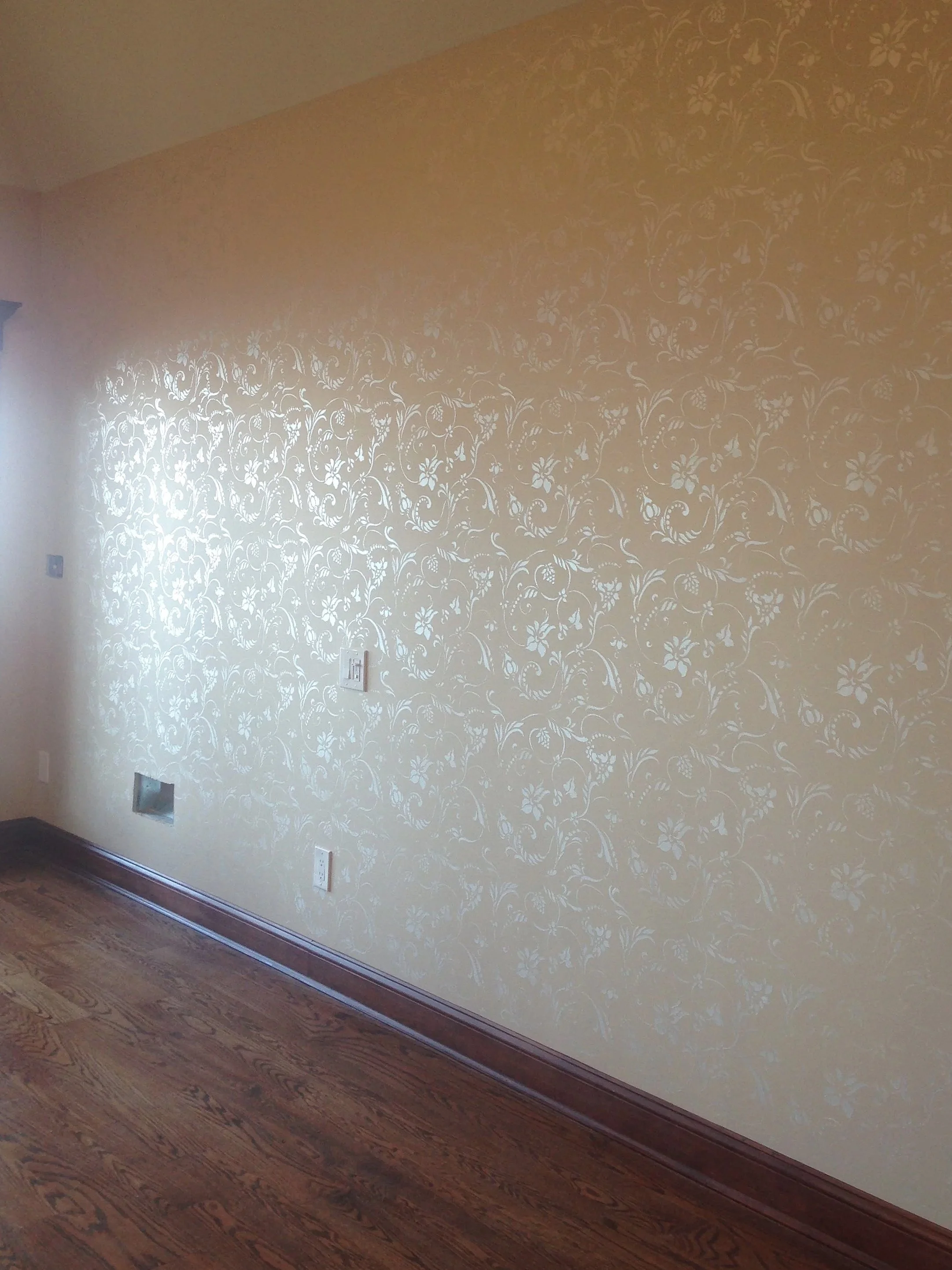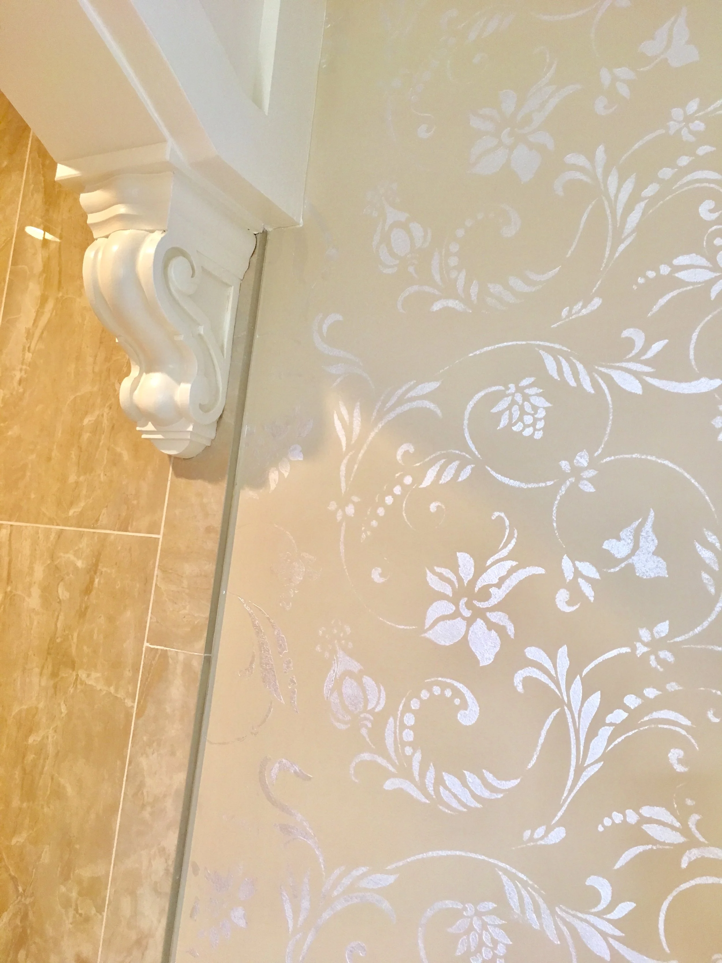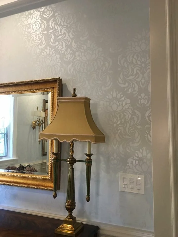 Gorgeous Damask Stencil on Pearlized Faux Finish