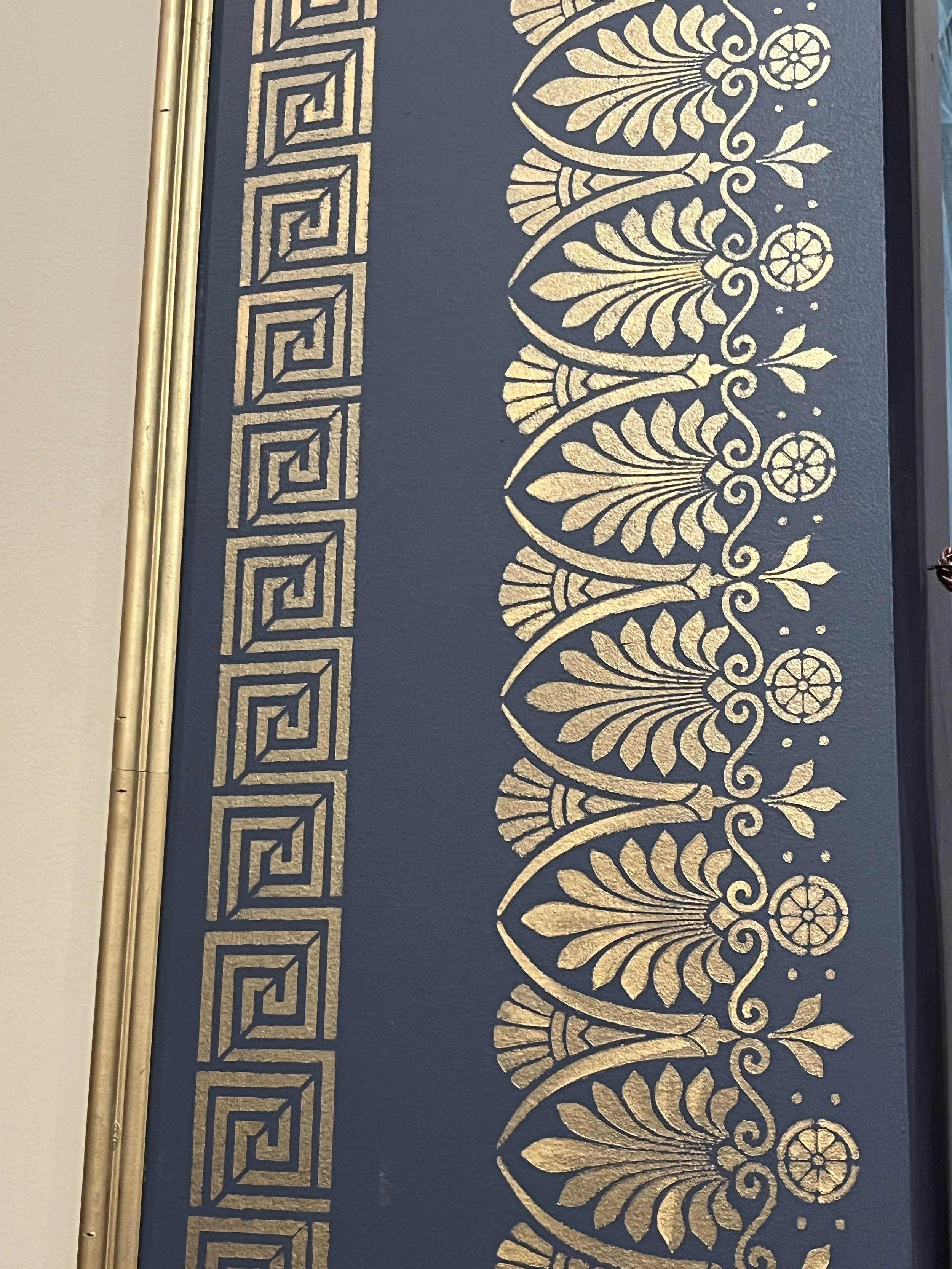 Elaborate trellis stencil done in a pearlized finish Palmray Interior Designs
