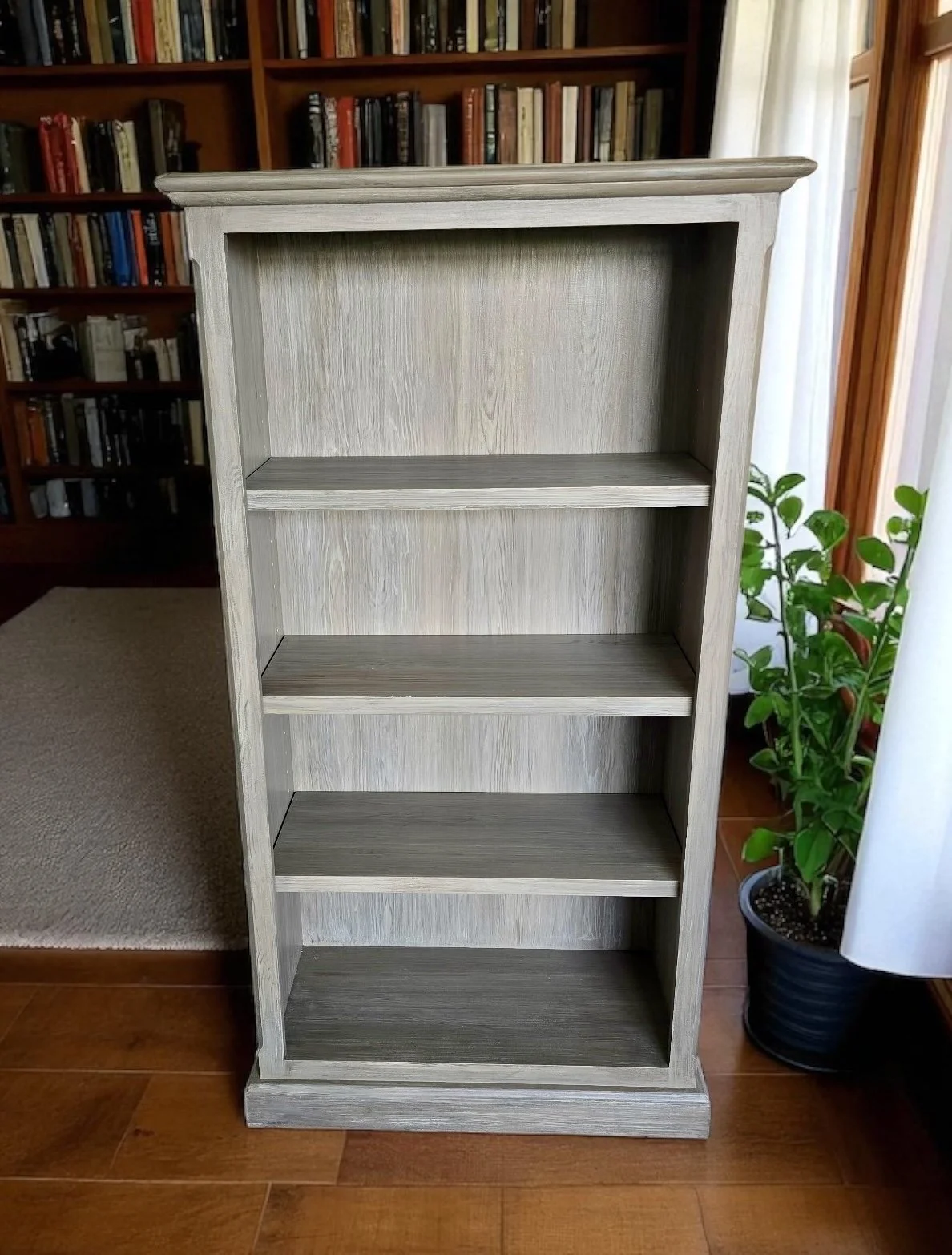 Pine bookcase transformed into a reclaimed wood look with faux grain technique!